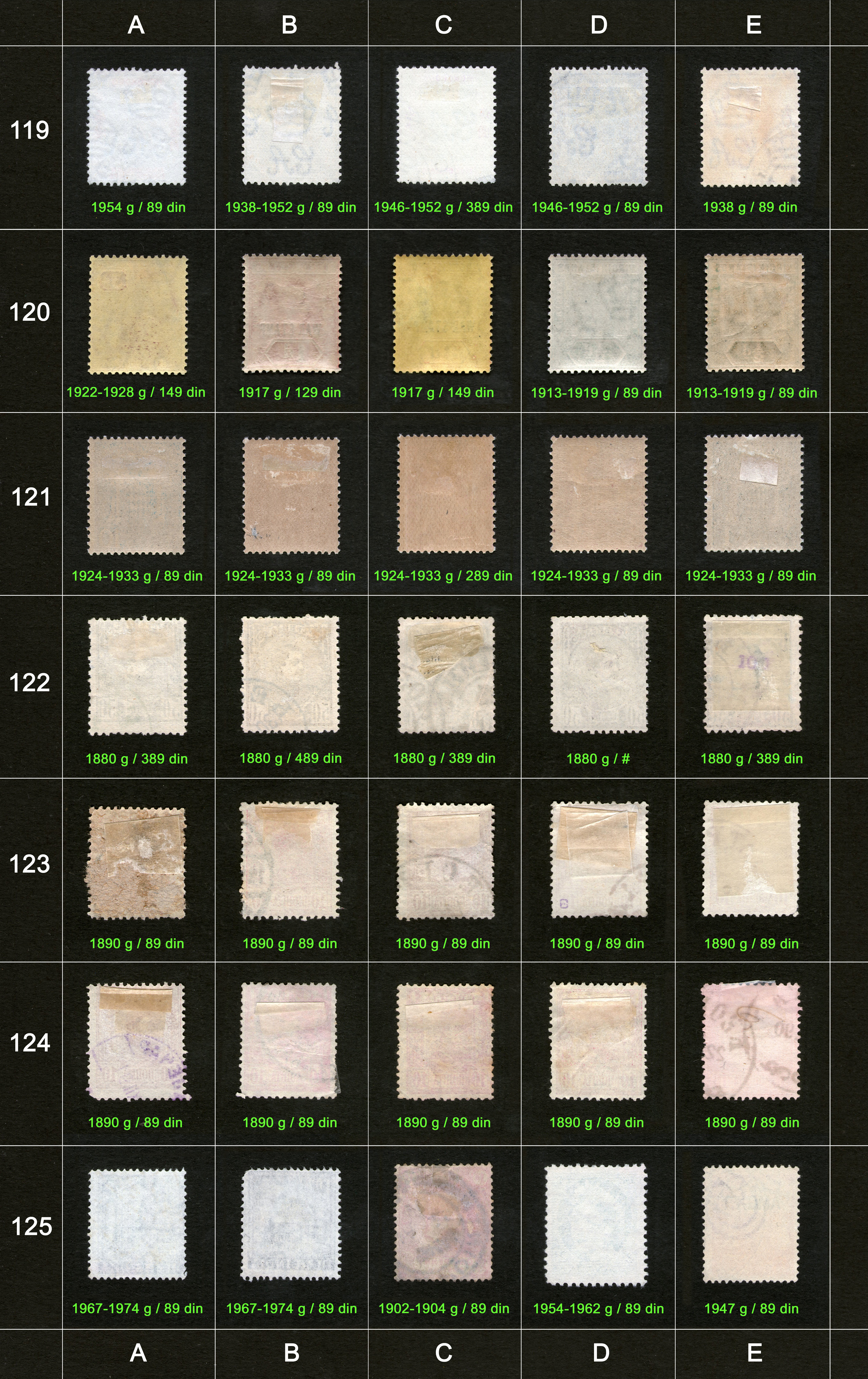 - ispod nekih starih markica je navedena brojčana oznaka (dok su